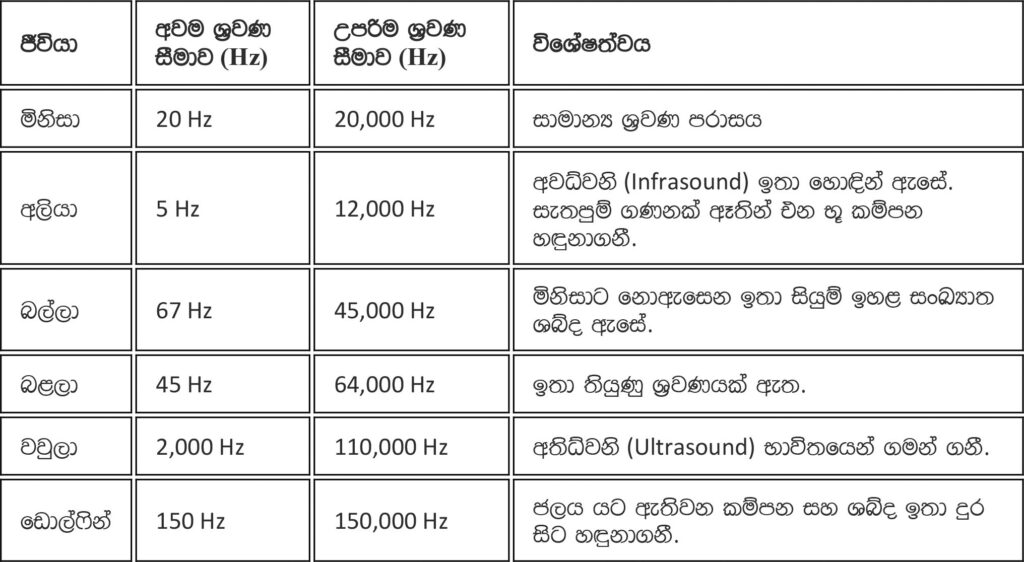 මිනිසුන්ට ඇසෙන්නේ හර්ට්ස් විස්සේ (20Hz) සිට හර්ට්ස් විසිදහස (20,000HZ හෙවත් 20kHz) දක්වා පරාසයක පවතින ශබ්ද පමණි. නමුත් මිනිසාට ඇසෙන ශබ්ද පරාසයට වඩා පුළුල් පරාසයක ශබ්ද ග්රහණය කර ගැනීමට සතුන්ට හැකියාව ඇත. සතුන්ගේ මෙම ශ්රවණ හැකියාව මිනිස් පරාසයේ සීමාවන් ඉක්මවා විහිදී තිබීම නිසා, සතුන්ට ‘හයවන ඉන්ද්රියයක්’ ඇතැයි යන ජනප්රිය මතය සමාජගත වී ඇති බව විද්යාඥයෝ පෙන්වා දෙති.