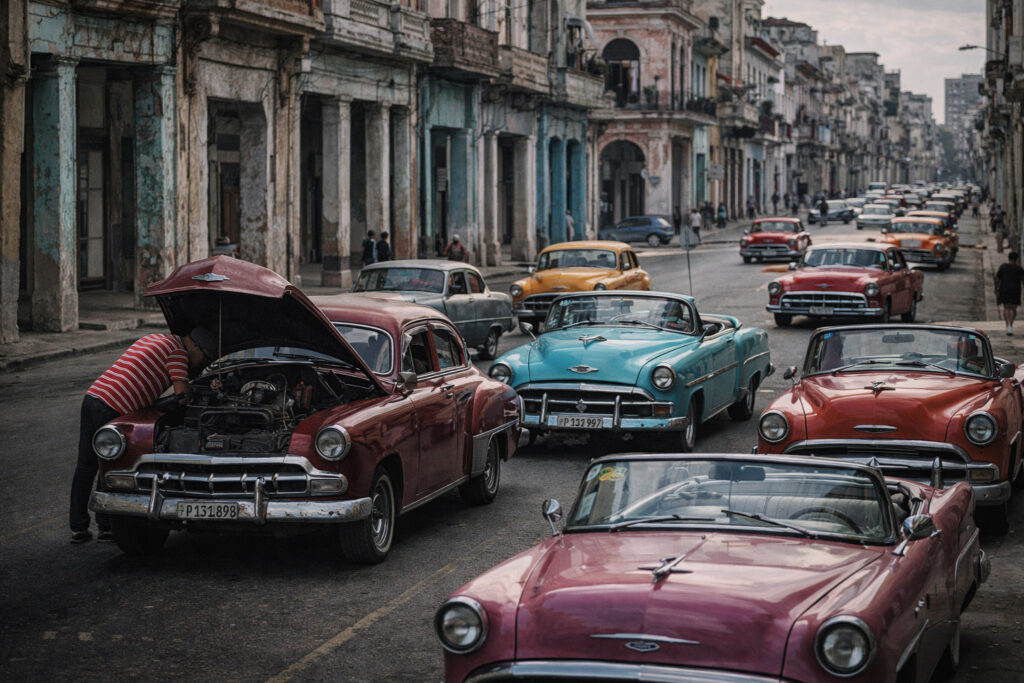 දශක ගණනාවක් පැරණි මෝටර් රථ (Classic Cars) වීදි පුරා ධාවනය වන, ලොව පවතින එකම ‘සජීවී කෞතුකාගාරය’ ලෙස විරුදාවලිය ලත් කියුබාව, අද එම අතීත උරුමය පවා නඩත්තු කරගත නොහැකි බරපතල බලශක්ති අර්බුදයක සිරවී සිටී.